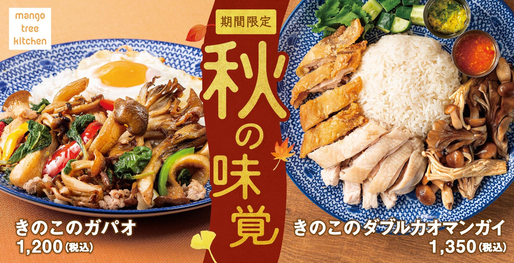 秋の訪れを知らせる「きのこのガパオ」と「きのこのダブルカオマンガイ」を、マンゴツリーキッチンにて2024年10月2日(水)より期間限定で販売を開始いたします。