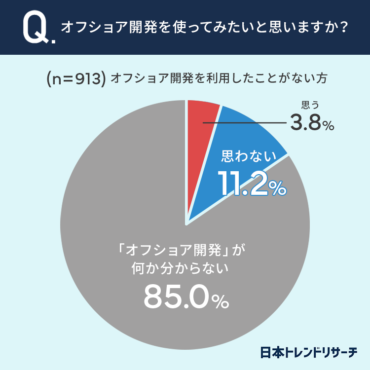 3.8%の方が「オフショア開発を使ってみたいと思う」と回答しています。