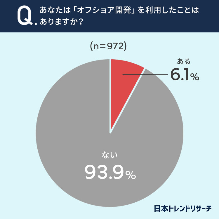 6.1%の方が、オフショア開発を利用したことが「ある」と回答しました。