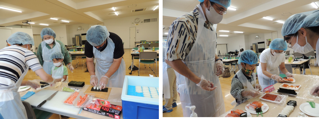 お待ちかねの試食会では、自分が握った・巻いたお寿司を味比べをしながら参加者の皆さんが美味しそうにほおばっていました。バックヤードツアーでは、普段見ることのない大きな水槽の裏側や水族館を裏で支えるポンプ・機械系統を見学しました。菊池館長の丁寧な説明に参加者は大きくうなずき、冷たい水が流れるパイプが集まった部屋はひんやりとして快適な時間を過ごしました。