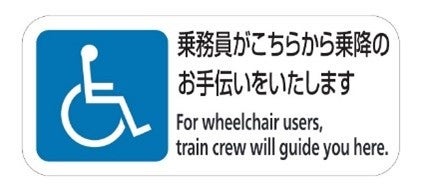乗務員がスロープを使用し列車の乗降のお手伝いを実施いたします。乗車を希望される列車が到着するまでにホーム上の下記サインの位置までお越しください。