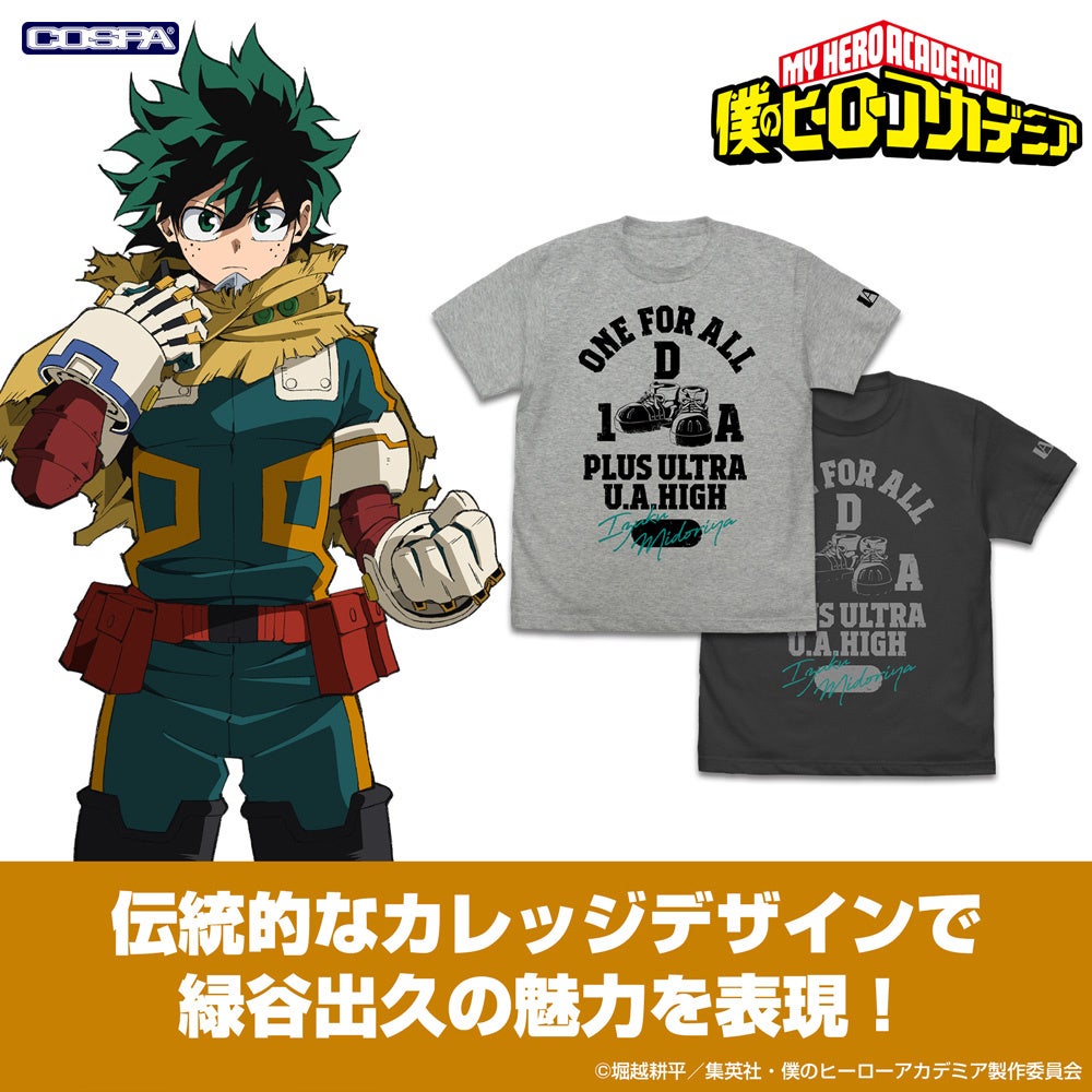 TVアニメ『僕のヒーローアカデミア』より、「緑谷出久」「爆豪勝己」「麗日お茶子」「轟焦凍」それぞれのロングTシャツや、伝統的なカレッジデザインのパーカーがCOSPA(コスパ)から登場。