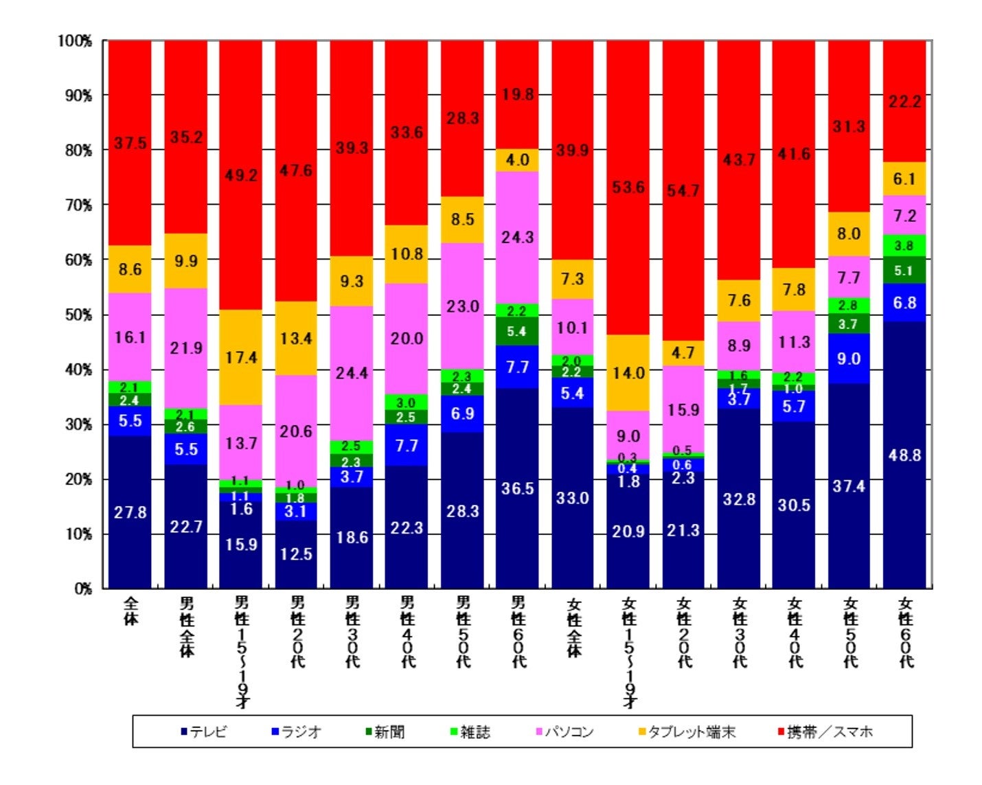 ○ 性年代別メディア総接触時間(1日あたり/週平均)