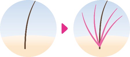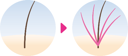 1本1本のご自髪に、毛材を結び付けて増毛することで、気になる部分をさりげなくボリュームアップします。ご自髪に合わせて、毛材の太さを選ぶことも可能で、2本/4本/6本の3種類の部材をご用意しています※4。