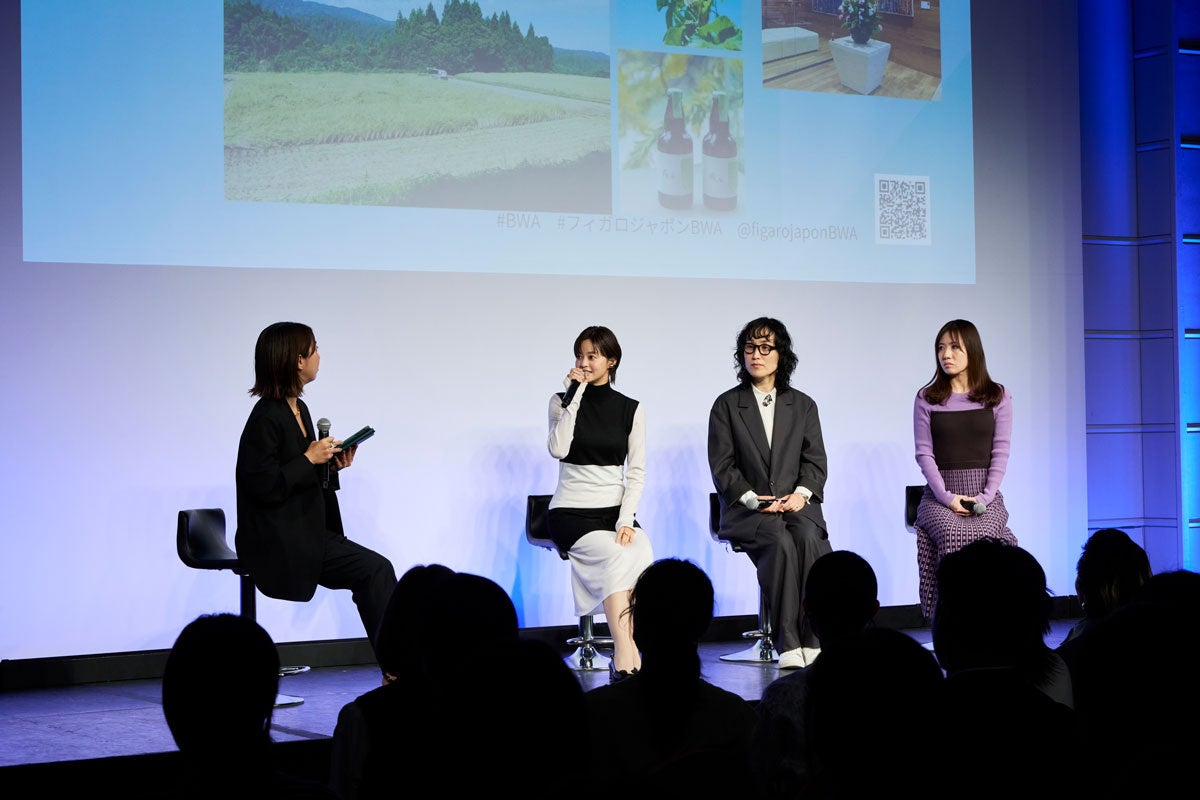 2023年のBWAアワード受賞者でAGRIKO代表の小林涼子は、アワード受賞後、農・福祉・食のビジネスに加え、心にも栄養をという思いでアート事業を立ち上げ、ともにに働く仲間を増やしている。同年の受賞者でモデラート代表の市原明日香は、仕事を離れていた期間があったからこそ、いまは働く上での困難すら楽しいと明るく語る。2024年の受賞者のMs. Engineer代表やまざきひとみは、経済性と社会性両方の課題を解決するという難しい課題に取り組んでいるから飽きずに続けていけるとコメント。「こうあるべき」に捉われない、さまざまな働き方や生き方が紹介された。