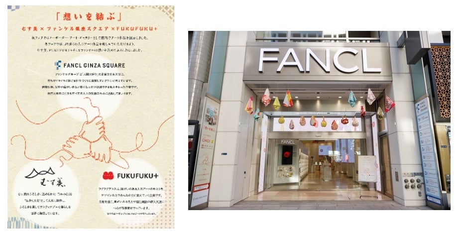 株式会社ファンケルの旗艦店であるファンケル 銀座スクエア(東京都中央区銀座5-8-16、以下 銀座スクエアと表記)は、京都のふろしきブランド「むす美」(山田繊維株式会社 本社:京都府中京区)と、障がい者アートを扱うデザイン事務所「FUKUFUKU+(フクフクプラス)」(東京都世田谷区野毛3-19-4-106)の3社で、「想いを結ぶ」をテーマとしたSDGsコラボレーションイベントを開催します。開催期間は1月17日(火)から2月15日(水)までです。