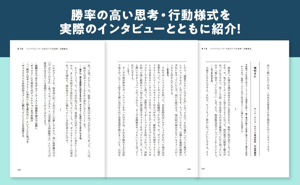 本書では、大手企業のトップ人材からトップアスリートまで高い成果を出し続ける人1000人以上を取材・分析して分かったハイパフォーマーに共通する7つの特徴を、実際のインタビューを交えながら紹介していきます。