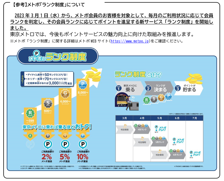※メトポのランク制度の詳細は、「【参考】メトポ「ランク制度」の開始について」及びメトロポイン