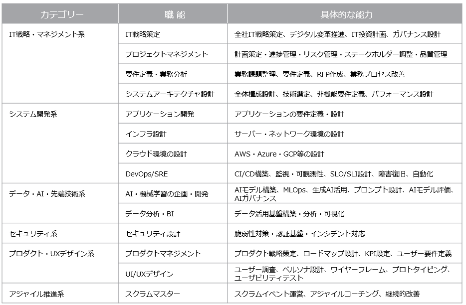 ※1 高度IT人材の定義詳細(カテゴリー、職能、具体的な能力)