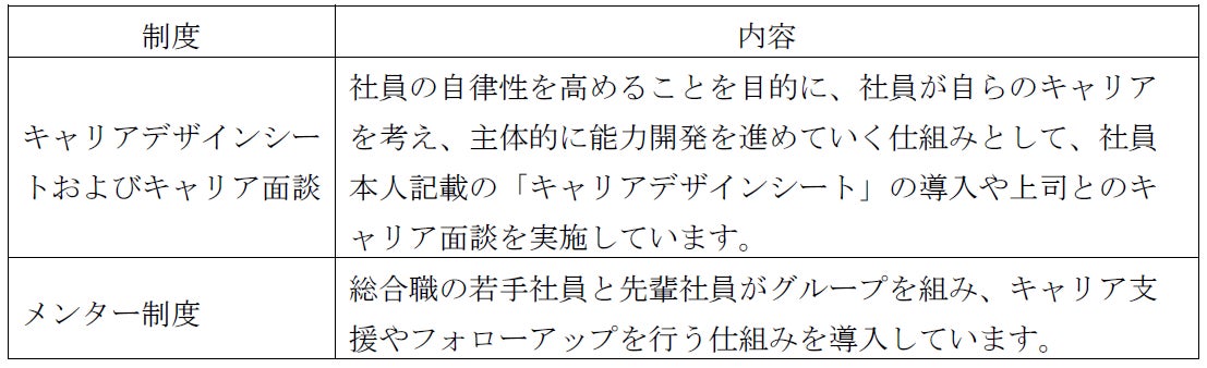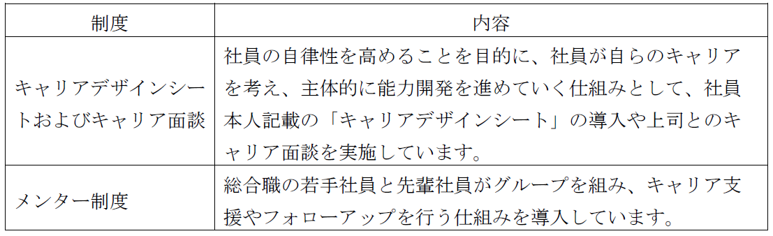 当社ではこれまでも、社員ひとりひとりが考える自律的なキャリアを支援するための様々な施策を導入しています。今回新たに「ポストチェンジ制度」を導入し、支援体制をより実効性あるものとしていくことで、引き続き、将来にわたり活躍する人財の確保ならびに社員の更なる働き甲斐の向上を目指してまいります。