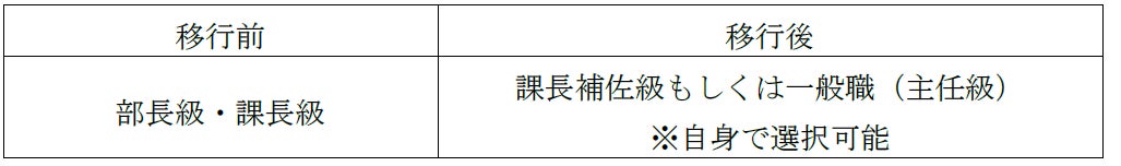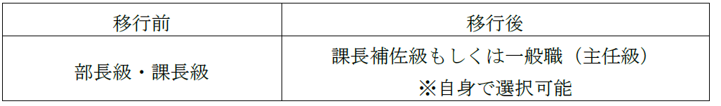 最大3年間(移行期間終了後は、原則移行前の職位に復帰します)