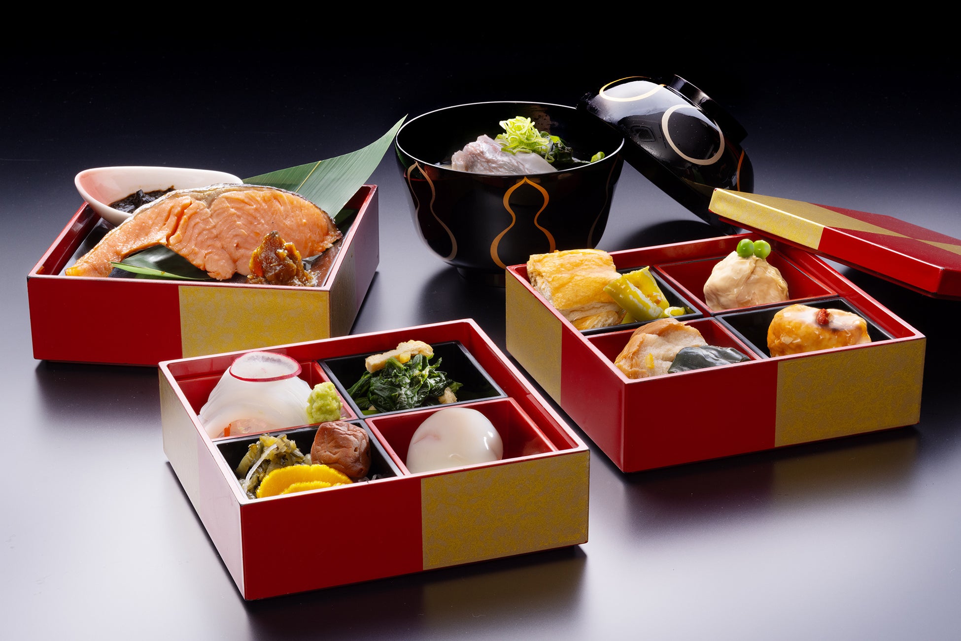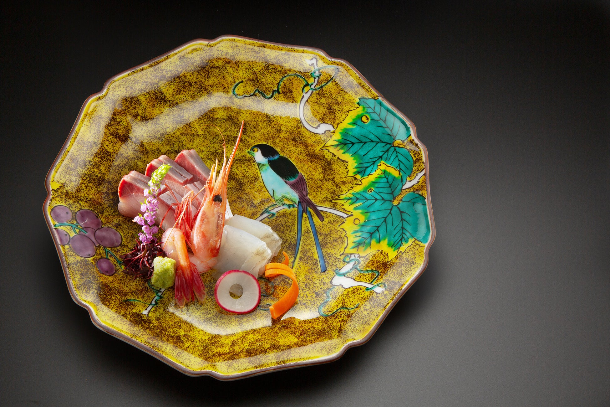 日本海の幸や加賀野菜をいただく夕食の会席料理では、産卵前に栄養を蓄える春の旬「桜鯛」の姿造りを1室に付き1台お召し上がりいただけます。脂がのった鯛の白身はたいへん美味で、春のお祝いや「花見鯛」としても愛される縁起物です。