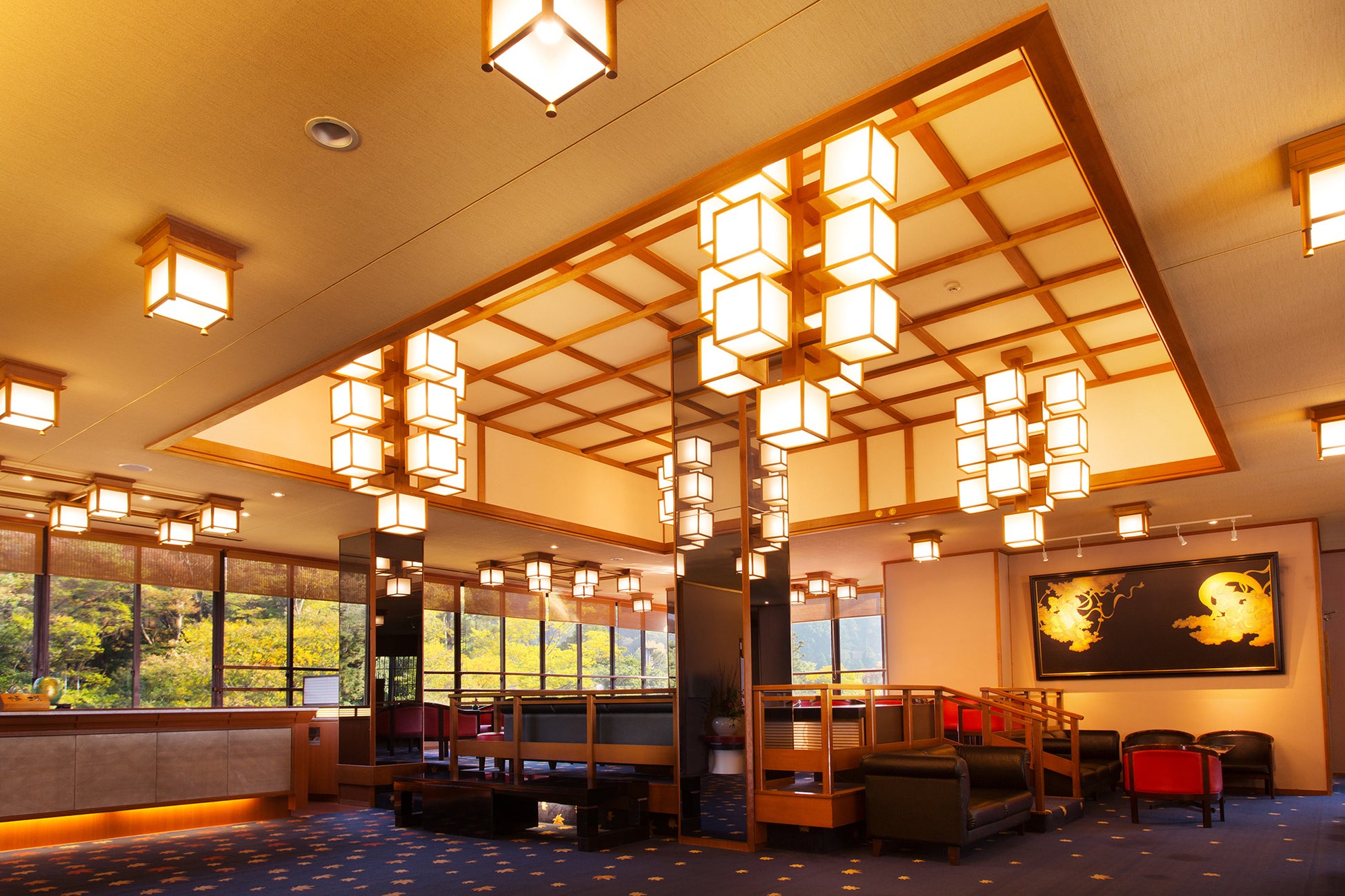 北陸随一の渓谷美と名高い「鶴仙渓」に架かる「こおろぎ橋」からすぐ、全室リバービューの加賀モダンな湯宿。露天風呂や貸切風呂、ロビーラウンジ、客室からは「鶴仙渓」の新緑、深緑、紅葉、雪景色など四季折々の情景をご覧いただけます。客室は展望風呂付き和室や、シモンズ社製ベッドが人気の和洋室など、旅のスタイルで選べる6タイプ全48室。