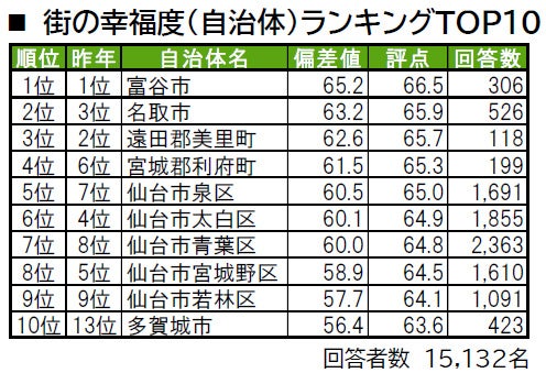 ■街の幸福度(自治体)トップは、2年連続で富谷市