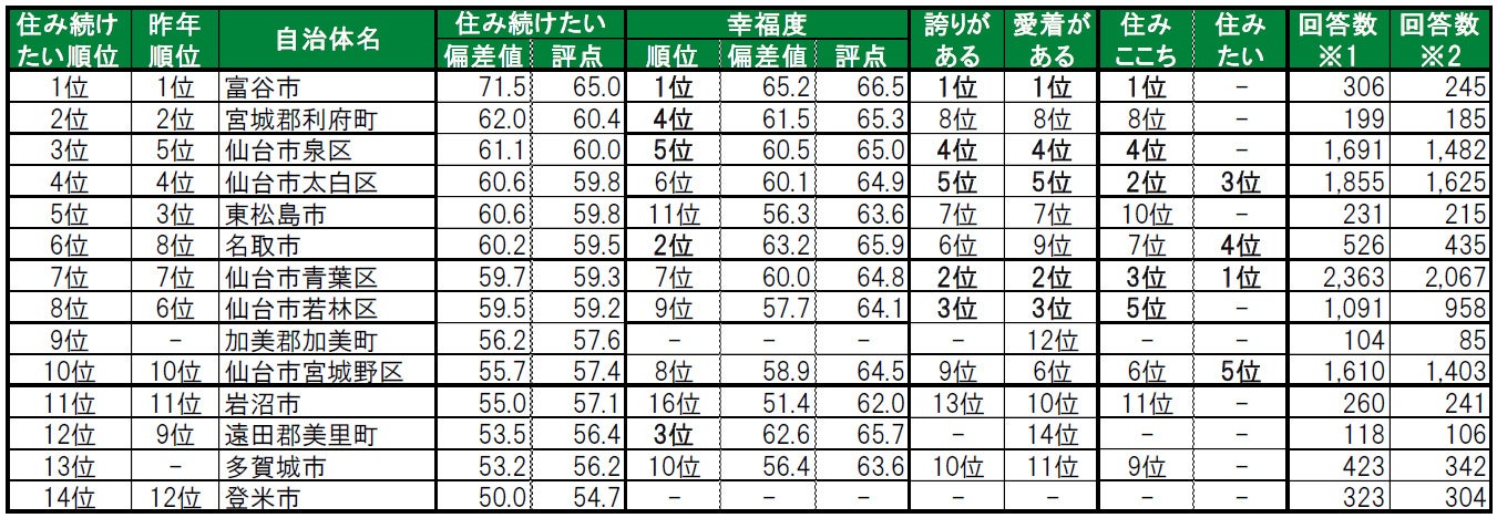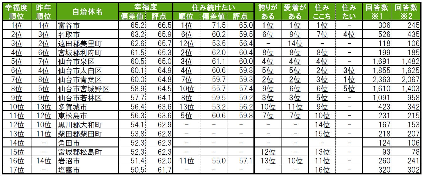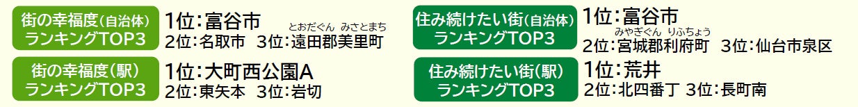 いい部屋ネット「街の幸福度 & 住み続けたい街ランキング2023<宮城県版>」(街の住みここちランキング特別集計)発表