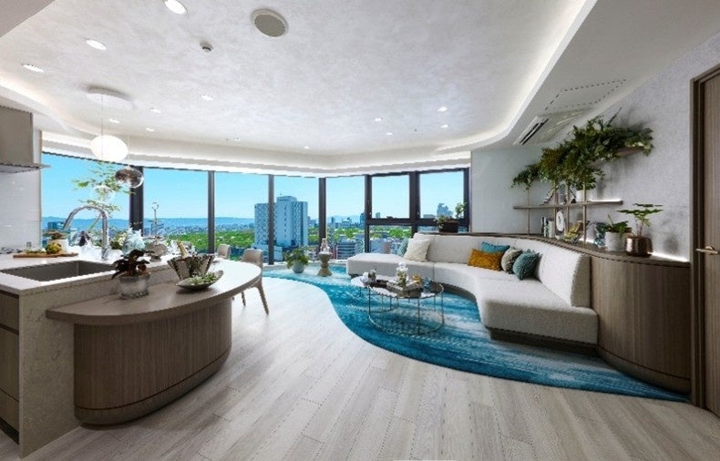 販売拠点となる大阪レジデンシャルサロン(所在:大阪府大阪市)内のモデルルームには、本物件の最大の特長の一つである爽快な眺望を体感するための施策として複数フロアからの眺望を再現する「LEDビジョン」と、住まいの窓に広がる風景を没入感たっぷりに体感できる「VR/MRヘッドセット」を導入。さらに、壁面・床面に映像を投写する「ダイナミックシアターシステム」による、本物件のコンセプトムービーも視聴していただけます。