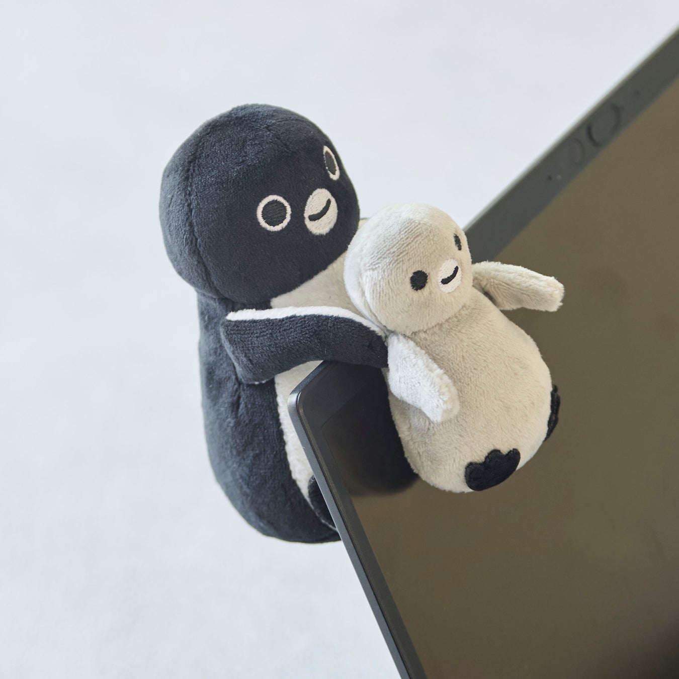デスクトップ型のパソコンやノートパソコンのディスプレイなどに飾れる、手のひらサイズのユニークなアイテム“ひっかけぬいぐるみ”が、Suicaのペンギンと子ペンギンが一緒のデザインで登場。座り型なのでそのまま置いて飾ることも可能。デスク周りをかわいく彩ります。(販売価格:2,650円)