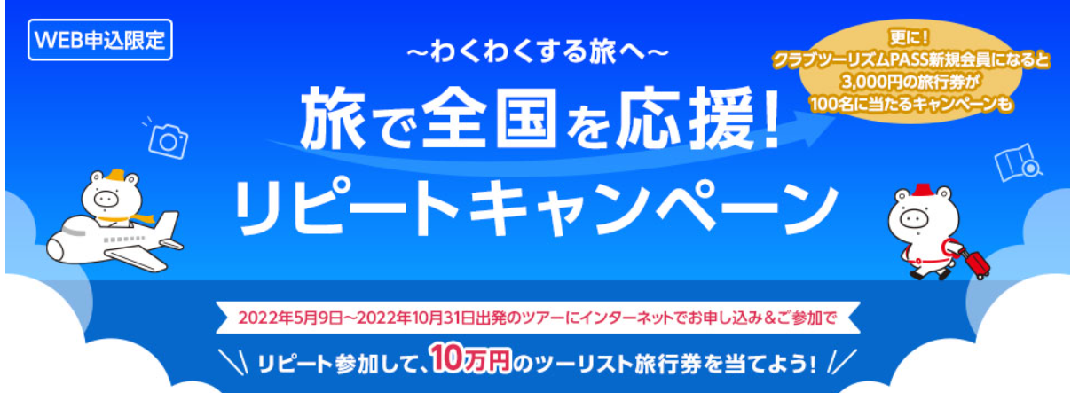 (1)クラブツーリズムリピート賞…抽選で5名様に10万円分のツーリスト旅行券