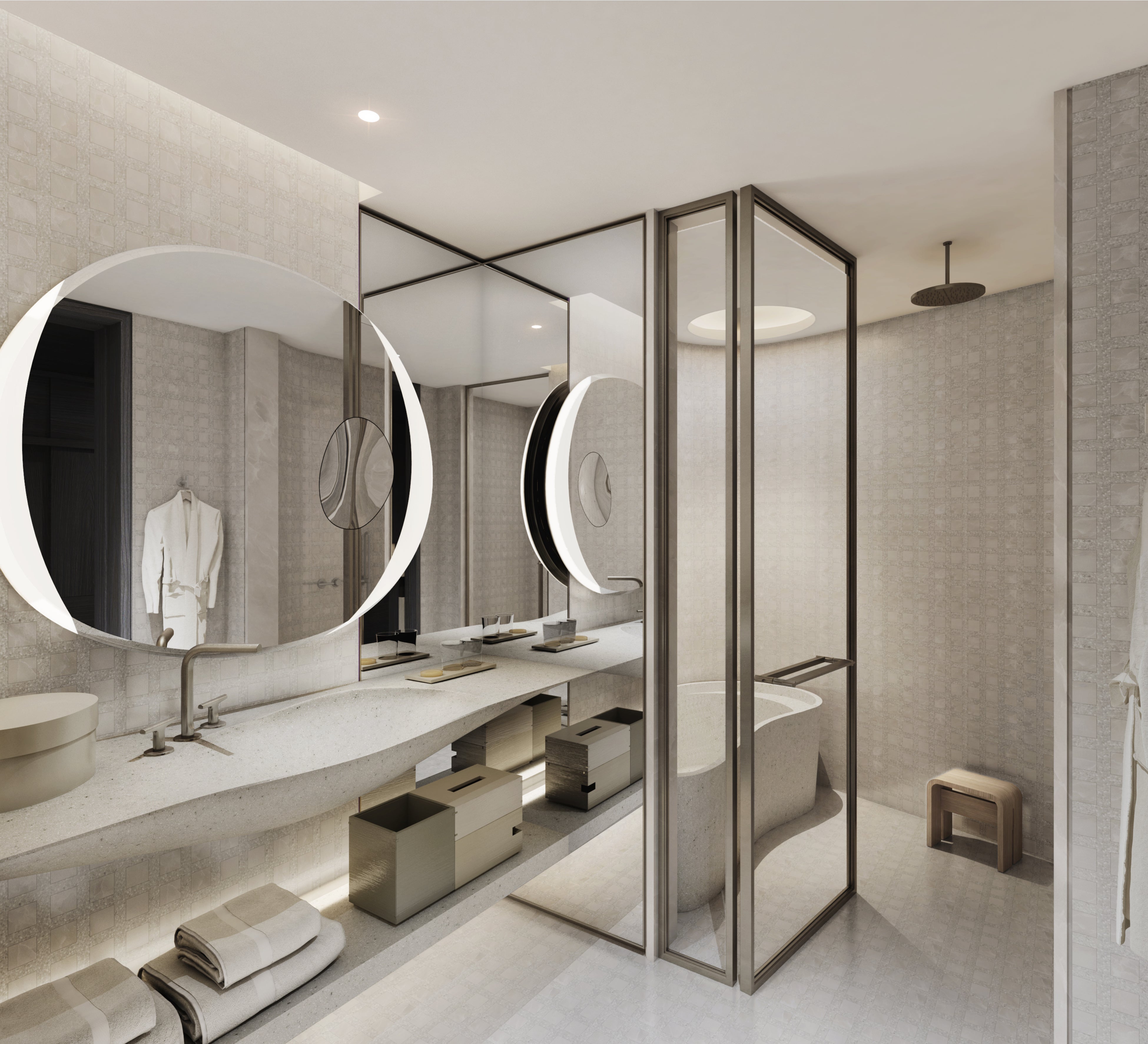 「JWマリオット・ホテル東京」の内装デザインは、「ザ・ロンドン・エディション」など世界のマリオットホテルでもデザイン実績のある「ヤブ・プッシェルバーグ」が担当。「禅」のイメージから、日本らしい深い藍色をアクセントカラーとし、 バランスの取れた繊細かつエレガントにデザイン。ゲストが文化的な幅の拡がりを経験し、ウェルビーイングの向上を体験できる場としてデザインしています。