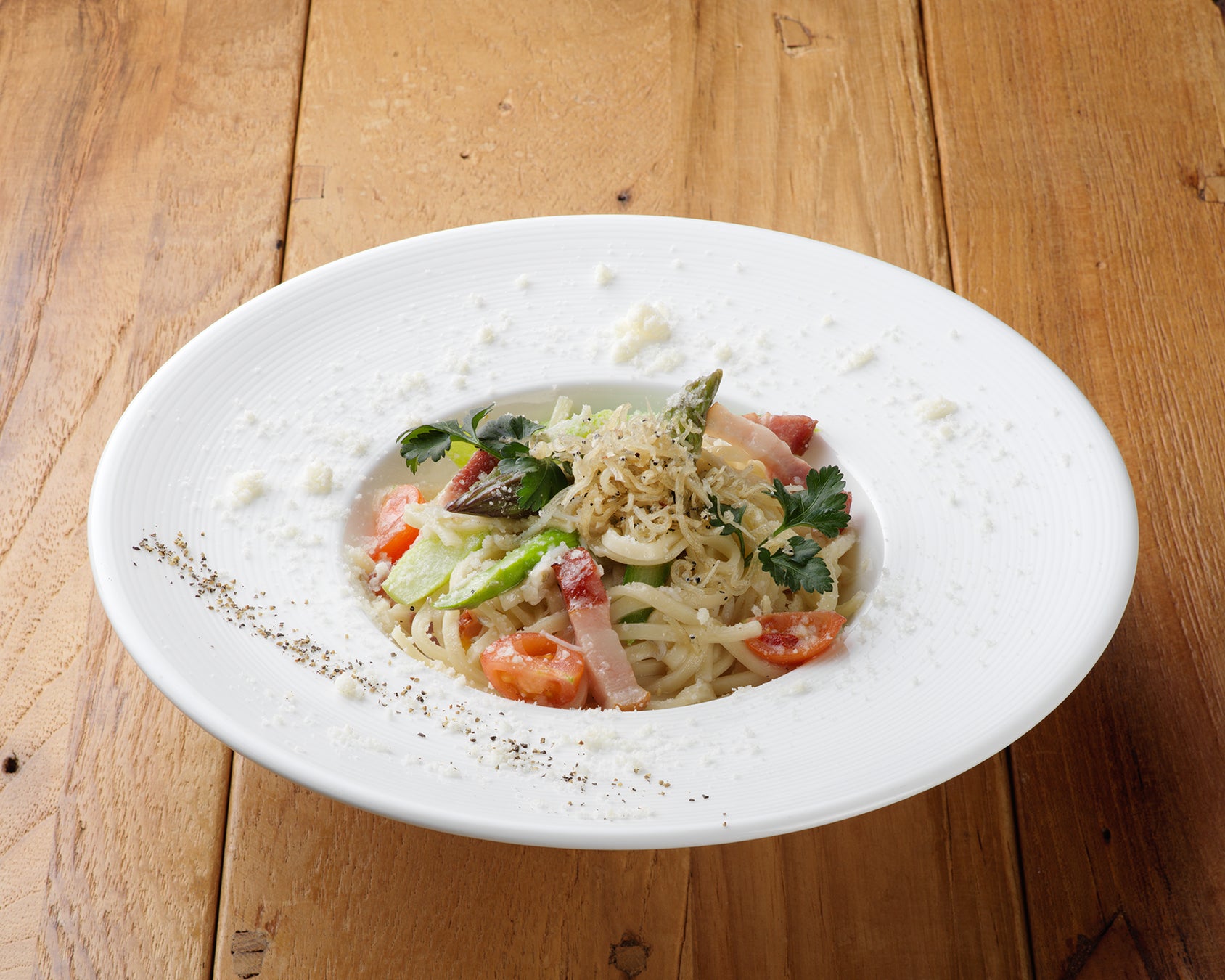 旬の道産アスパラの豊かな風味とシラスの旨みが絶妙にマッチした4月限定の新作パスタ。