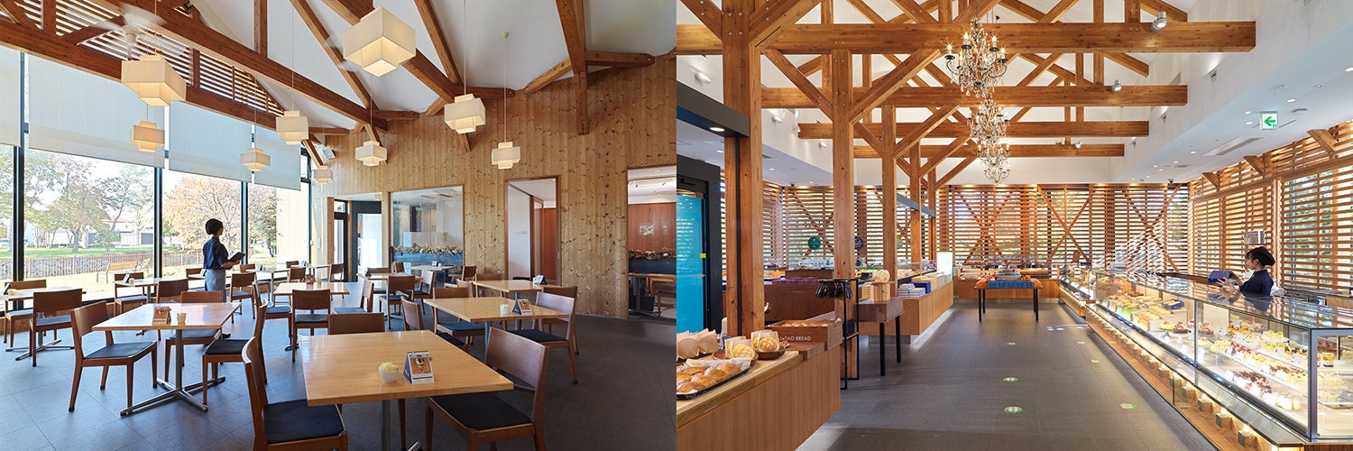 1600坪もの広大な敷地には、ルタオの魅力がぎっしり。パン工房を持つのは、ルタオのなかでもドレモだけ。工房で焼いた、できたてのパンが店内にズラリと並びます。