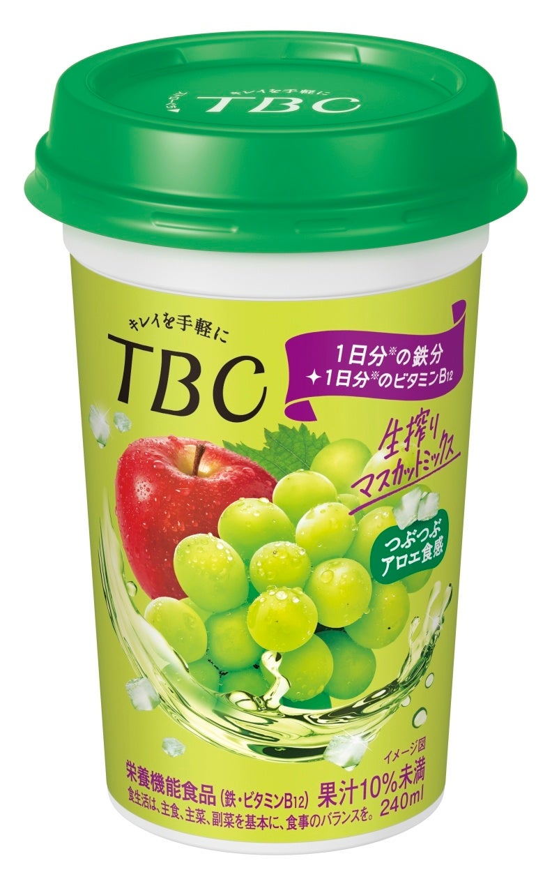 「TBC 生搾りマスカットミックス」は、普段の食事では必要量を摂取しにくい、1日分の※鉄分とビタミンB12がまとめて摂れるドリンクです。