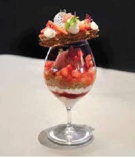 今回ご用意するのは、北欧の秋をイメージし、奥出雲薔薇園の香り高い薔薇をあしらった特別なパフェ「Derniers Feuilles Rose(デルニエ・フイユ・ローズ)」。