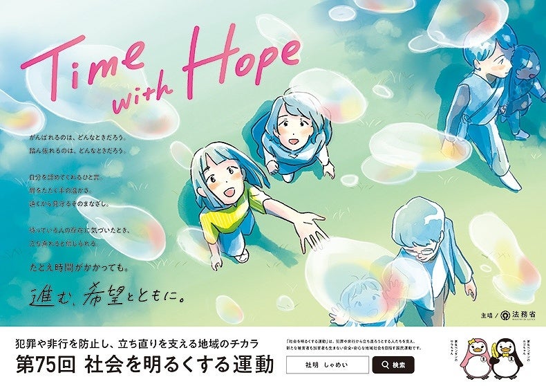 今年は「Time with Hope―進む、希望とともに。」をキャッチコピーとしています。犯罪や非行からの立ち直りのためには、更生に向けて努力する人の未来を信じて、その「変わっていく時間」にともに寄り添う人たちの存在が必要です。