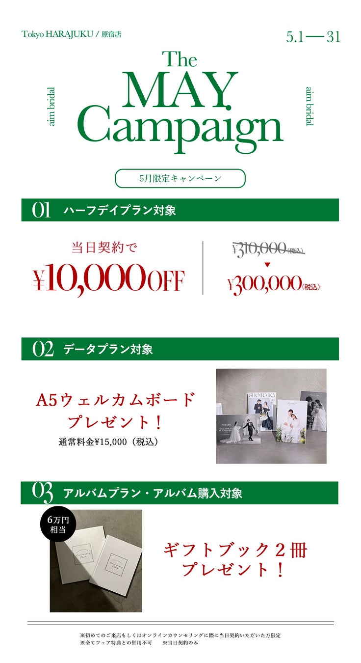 【aim東京原宿店】5月限定お得なブライダルキャンペーン情報!