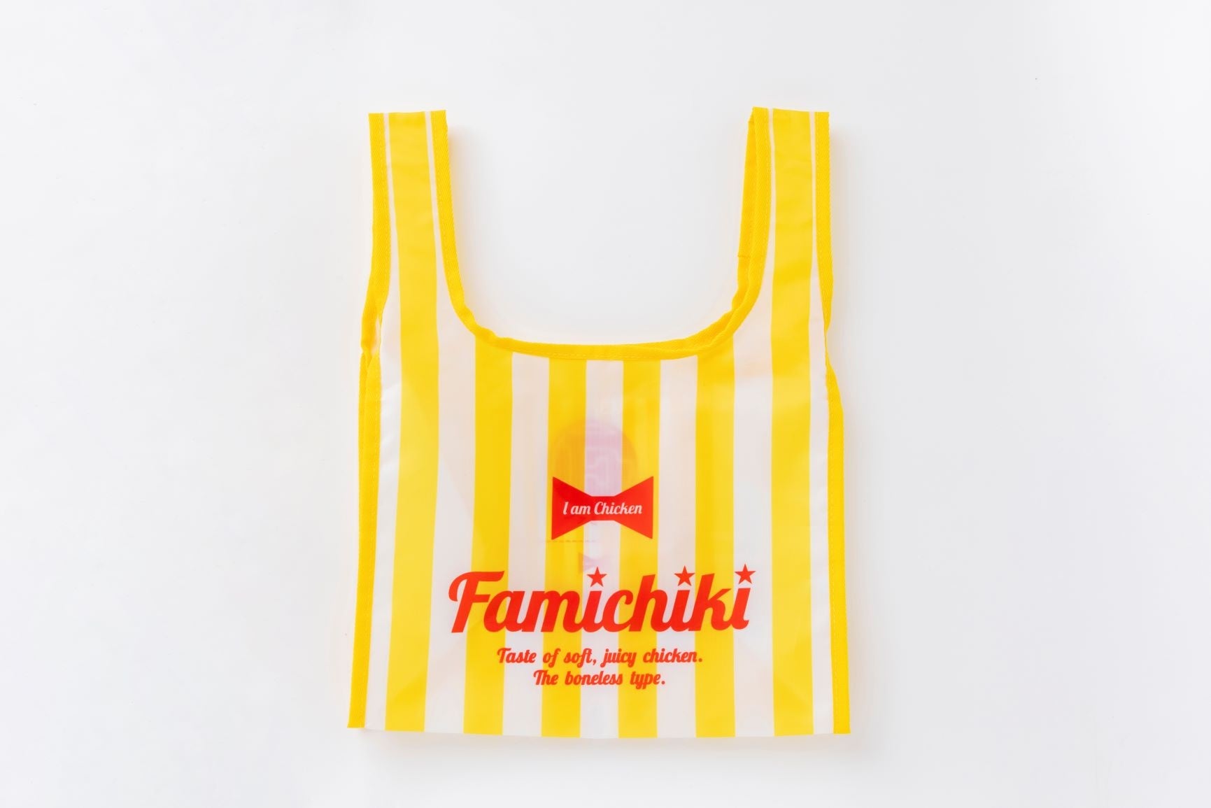 内容:ファミチキ袋柄のエコバッグとポーチです。次回ご利用いただけるファミチキ割引券付き。