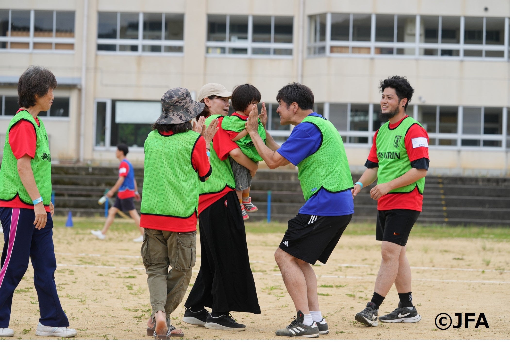 この度の能登半島地震の発生を受け、サッカーを通じた復興応援の在り方を検討しました。今回のプロジェクトでは、走らないサッカー「ウォーキングフットボール」を活用し、性別や年齢、サッカー経験や障がいの有無に関わらず、被災地域の皆さまが一緒になって楽しむことができる機会を創出します。第1回目を5月に能登町で、第2回を6月に輪島市門前地区、第3回を輪島市輪島地区で開催しました。参加者からは、「体を動かす機会がなかったので楽しかった」「新しい友達ができて嬉しかった」などの声をいただき、多くの笑顔が広がりました。