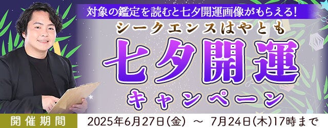 株式会社レンサ(本社:東京都渋谷区、代表取締役:武井哲也)は、2025年6月27日(金)より、運営する公式占いサイト『シークエンスはやともの占い』にて、「七夕開運キャンペーン」の提供を開始いたしました。