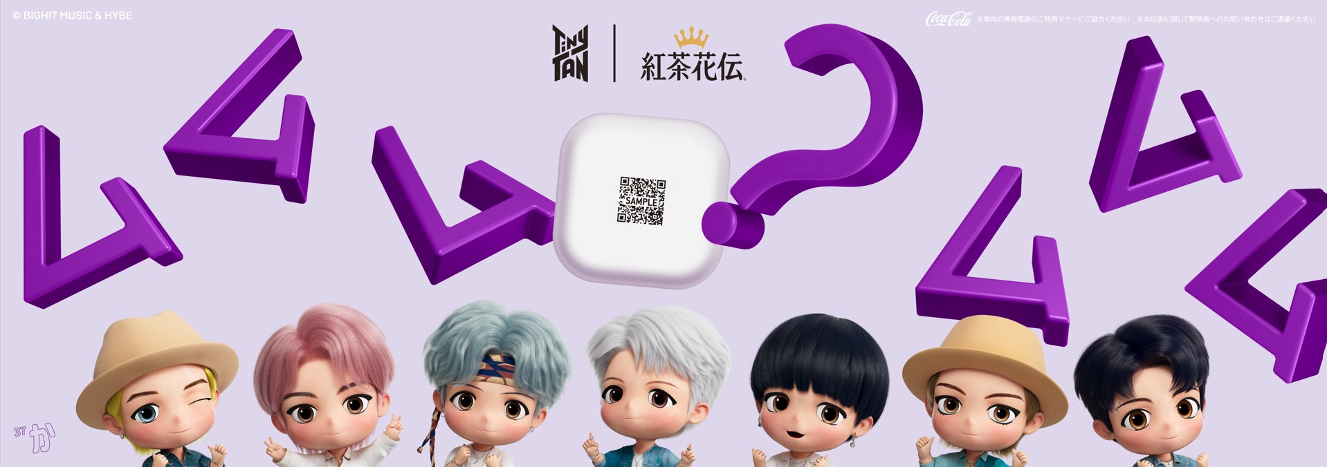 屋外広告にある二次元コードを読み込むと、「ムムム紫を探せ!スタンプラリー」のスタンプが獲得できます。全8種類のスタンプを集めると、「TinyTAN」限定デザインのCoke ONドリンクチケットが抽選で1,000名様に当たります。屋外広告の掲載箇所などの実施詳細は、3月17日以降、「紅茶花伝」ブランドサイトをご確認ください。
