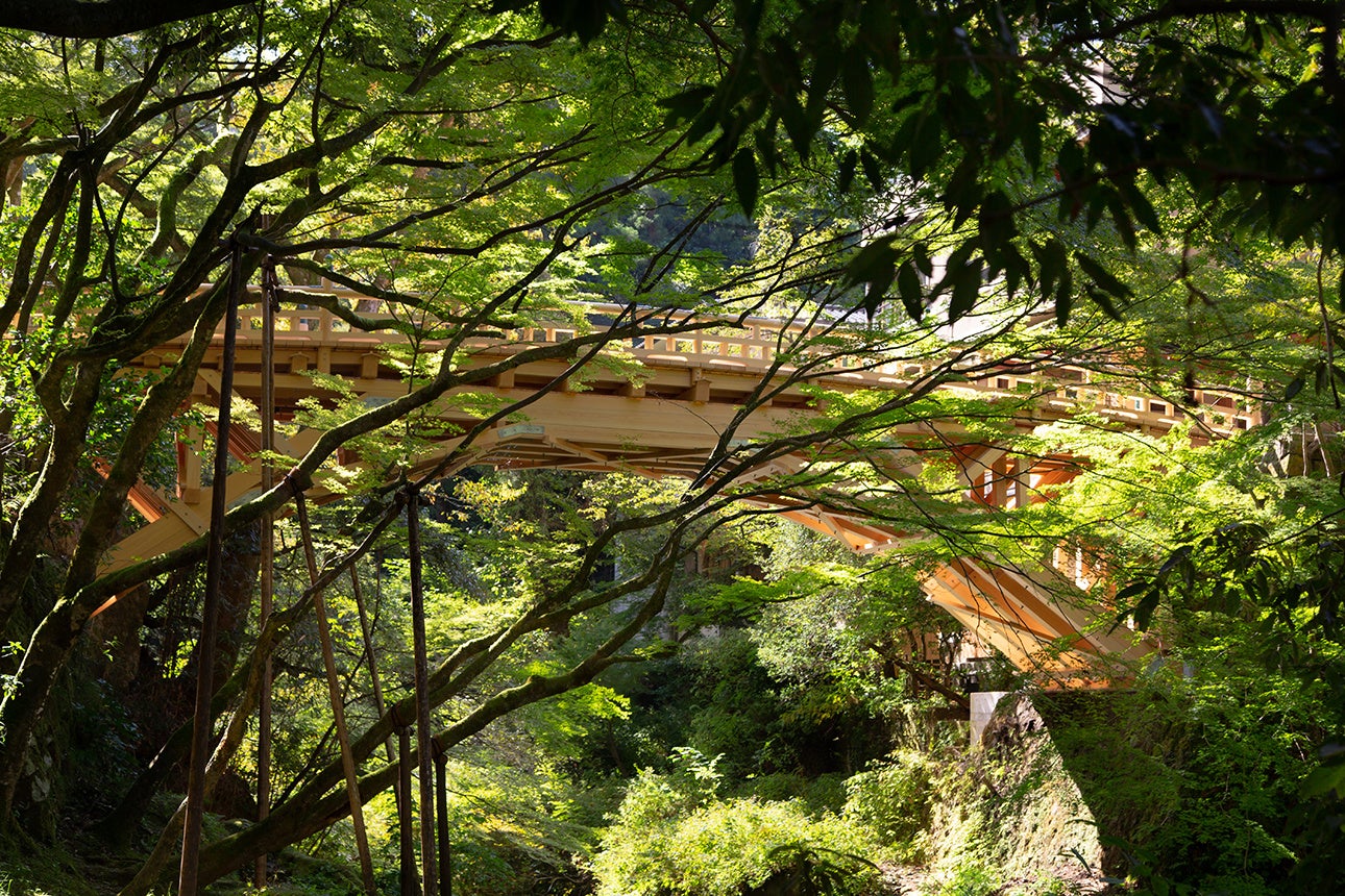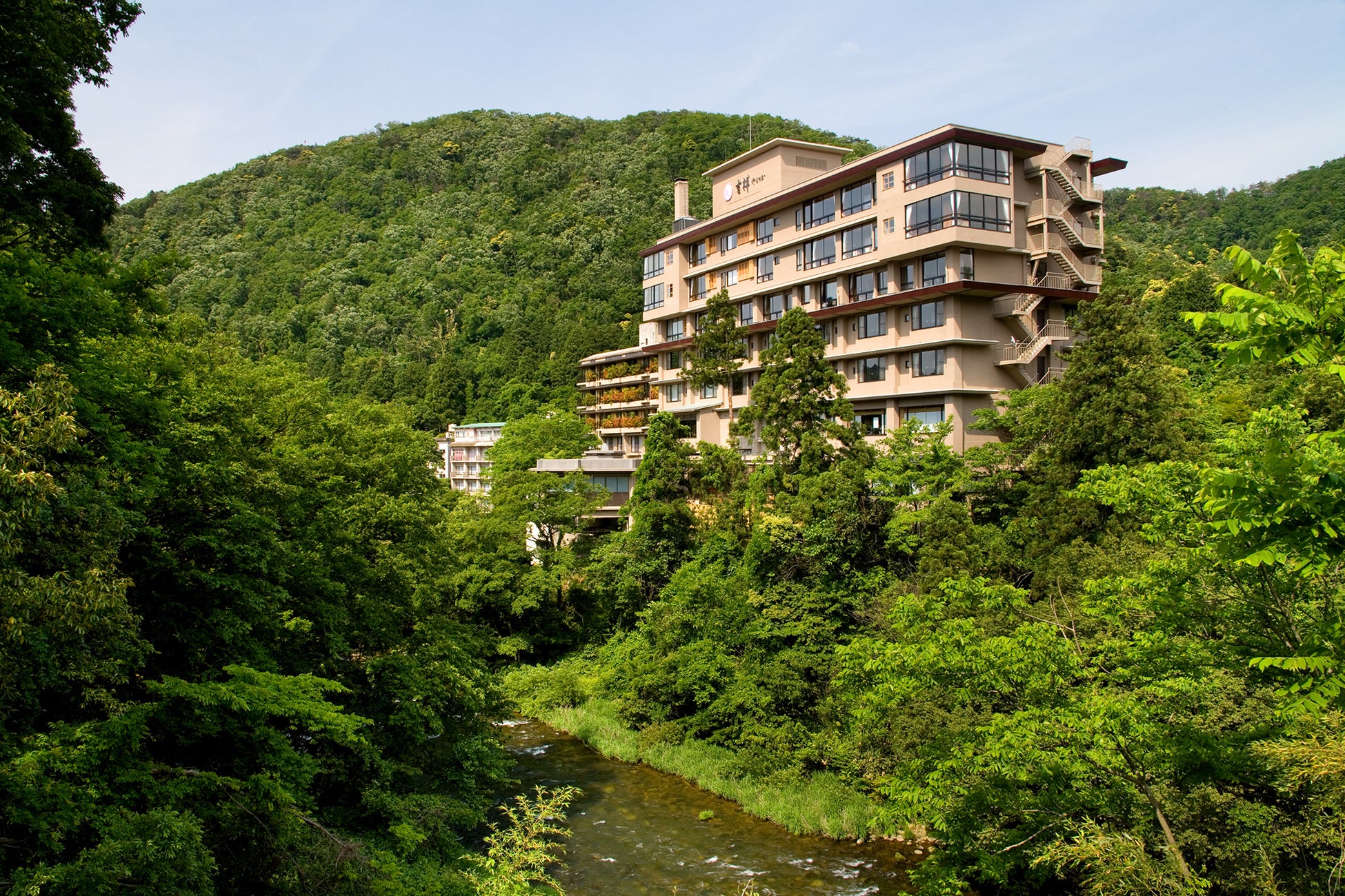 名勝・鶴仙渓(かくせんけい)沿いの加賀コンシャスな湯宿。新緑、深緑、紅葉、雪景色をお愉しみいただけます。「ミシュランガイド北陸版」では三つ星を獲得。館内には山中塗、九谷焼、加賀水引などの伝統工芸品を配し、加賀の上質な文化が感じられる設えです。まろやかな湯はph値が高く、温泉大浴場や露天風呂、足湯、貸切風呂、グループ旅館「かがり吉祥亭」への湯巡りで楽しめます。
