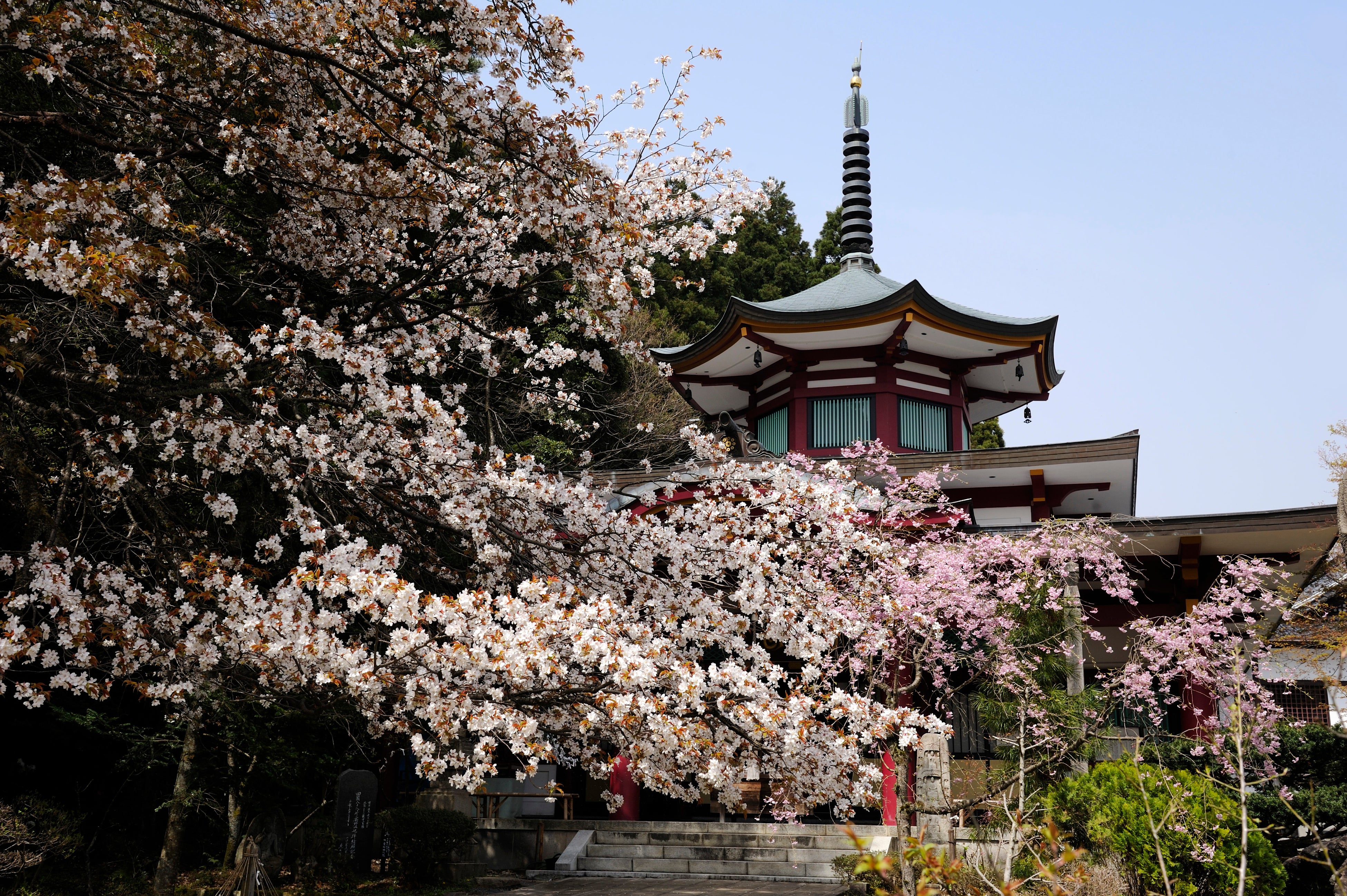 当館周辺には徒歩圏内に、しだれ桜やソメイヨシノが咲く「鶴仙渓」、「総湯・菊の湯」「医王寺」「白山神社」など、桜の名所が点在します。10~20分ほど車を走らせて、勅使や熊坂川沿いの桜並木など、約3,000本の桜めぐりもオススメです。