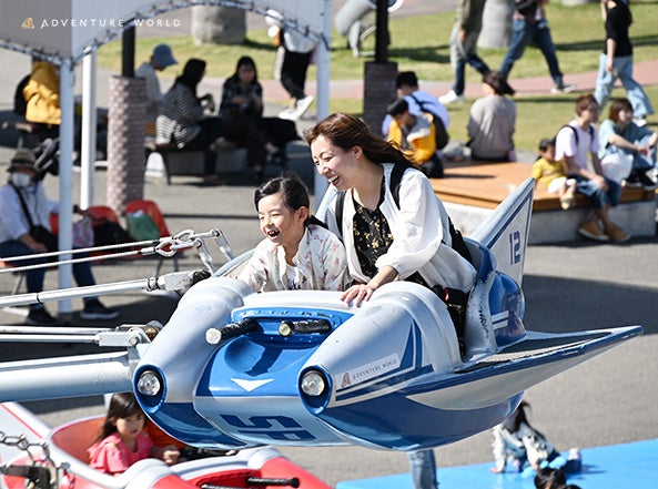 アドベンチャーワールドの上空をぐるっと駆け巡るスリル満点のジェットコースターや小さなお子様も楽しめるメリーゴーランドなど遊園地エリアののりものが1日乗り放題!