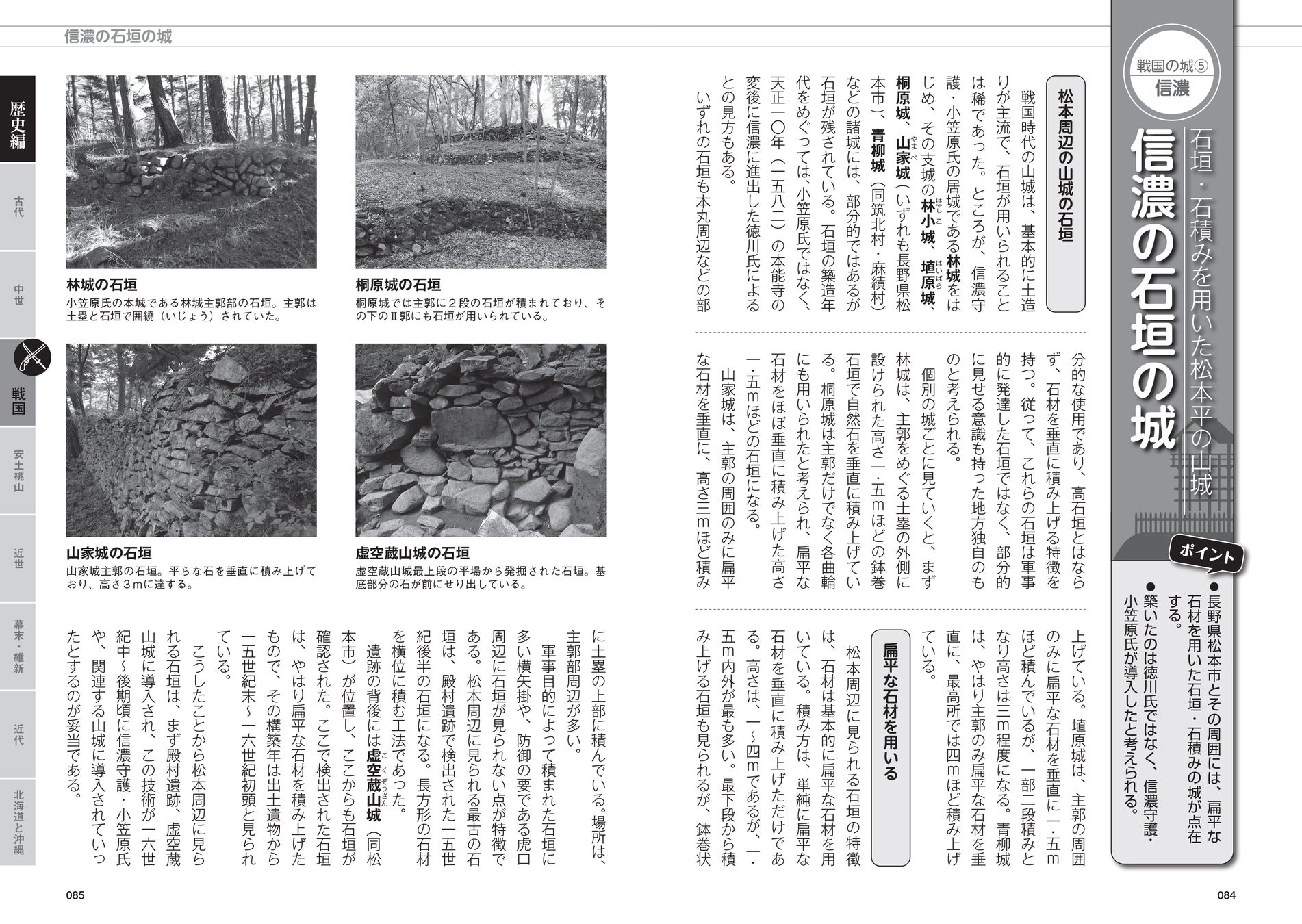 今回、近年の発掘・調査研究から明らかになった最新トピックスを追加・反映させて情報をアップデート。特に、戦国から安土桃山時代の城に関する解説を強化しています。山城の発展や有名戦国大名の居城の特徴のほかにも、信長・秀吉・家康の城が城郭史に与えた影響など、築城技術や役割の変遷をさらに深掘りしました。軍事拠点としての機能だけでなく、経済・文化の中心地として、政治的な城の役割も詳しく解説しています。