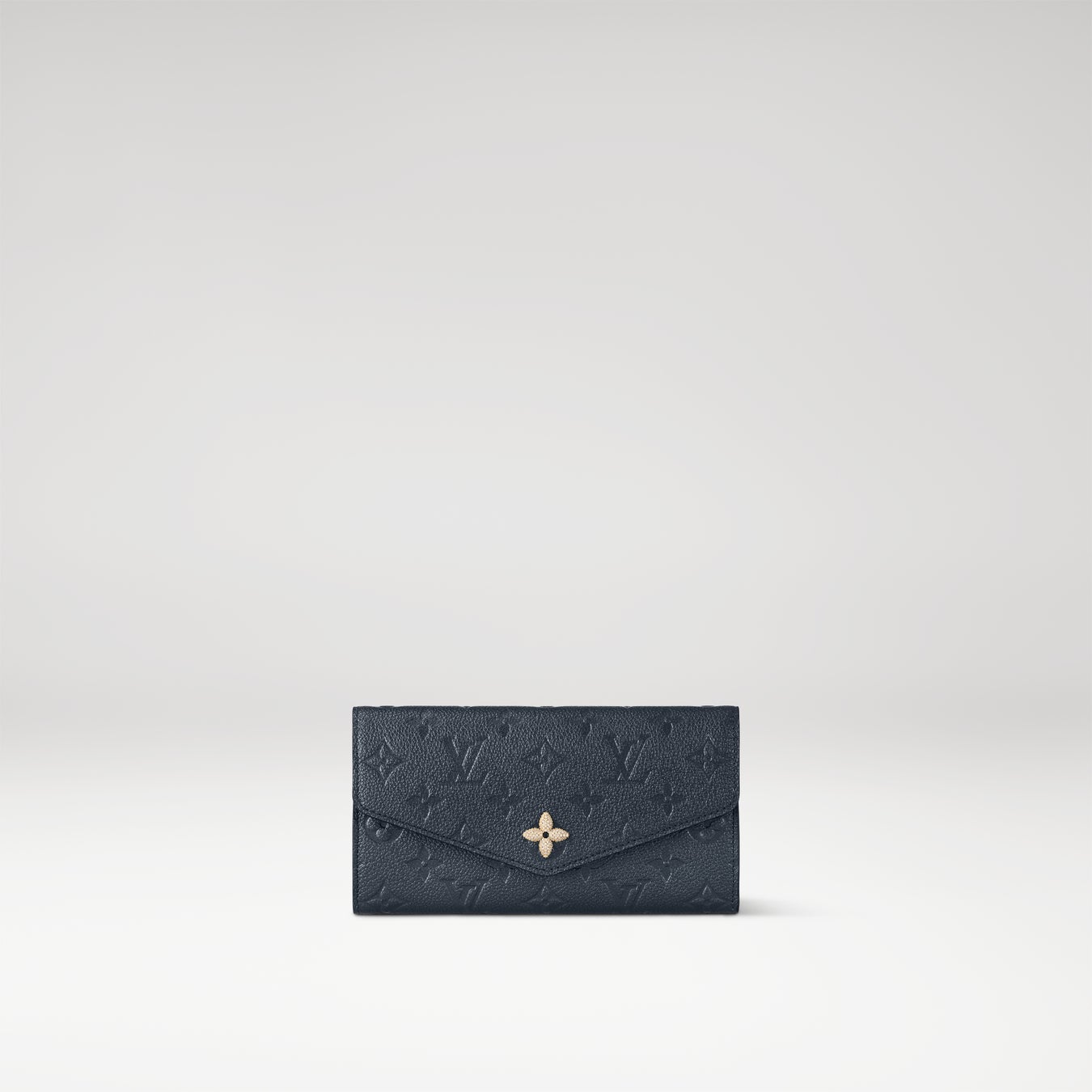 「ポルトフォイユ・サラ NM」は、ギフトにもぴったりのアイテムです。エンヴェロップスタイルに、ストラスを散りばめたモノグラム・フラワー モチーフのスナップボタンで彩りを添えました。内側には、複数のポケット、コンパートメント、カードスロットを備えています。