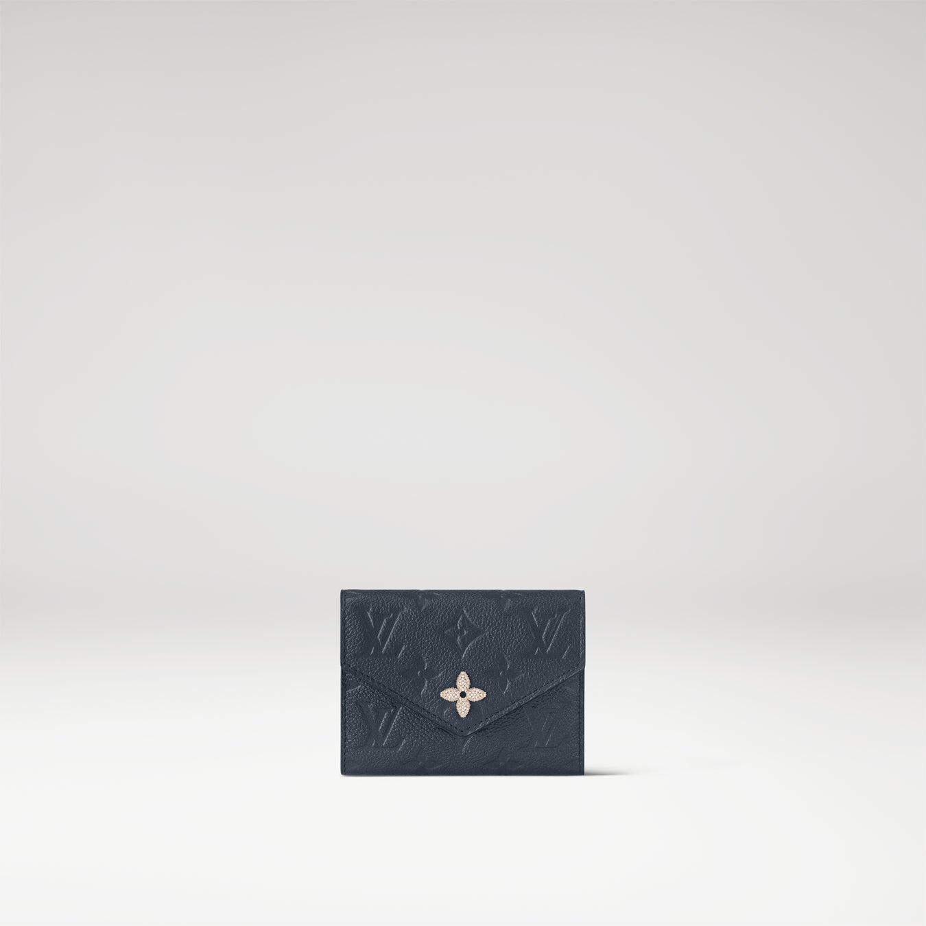 「ポルトフォイユ・ヴィクトリーヌ」は、小ぶりながら、複数のポケットと6つのカードスロットを備えた驚くほど大容量の内装が魅力の、ギフトにぴったりなアイテムです。エンヴェロップ型のフラップに、ストラスを散りばめたモノグラム・フラワー モチーフのスナップボタンが彩りを添えます