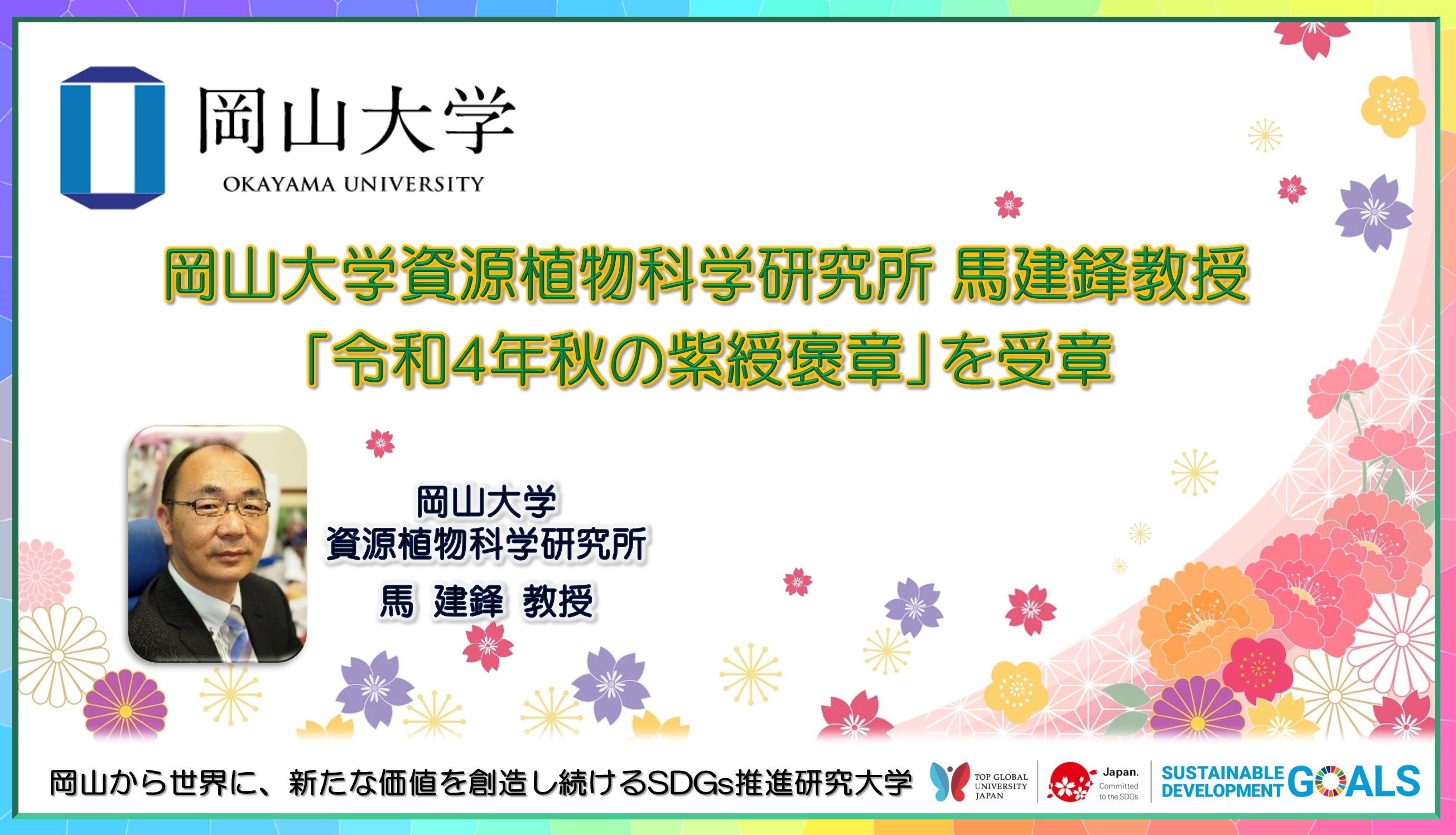 【岡山大学】資源植物科学研究所の馬建鋒教授「令和4年秋の紫綬褒章」を受章