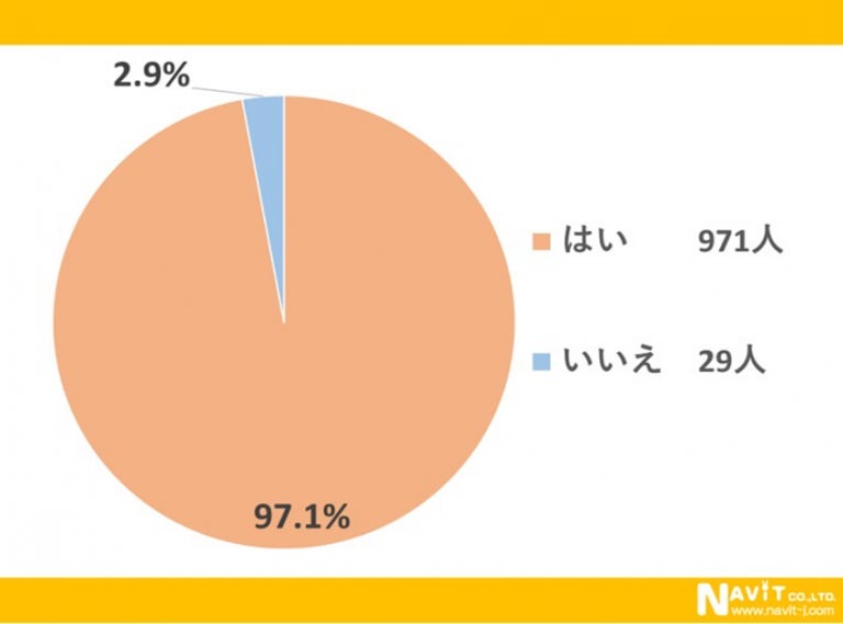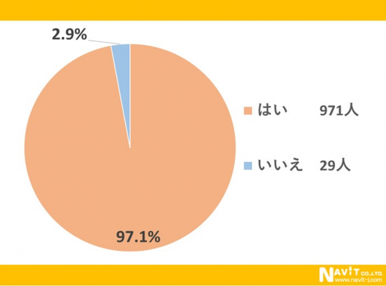ゴミを分別しているかという質問に対して大部分の方が「はい」という回答を出しており、97.1%となっています。