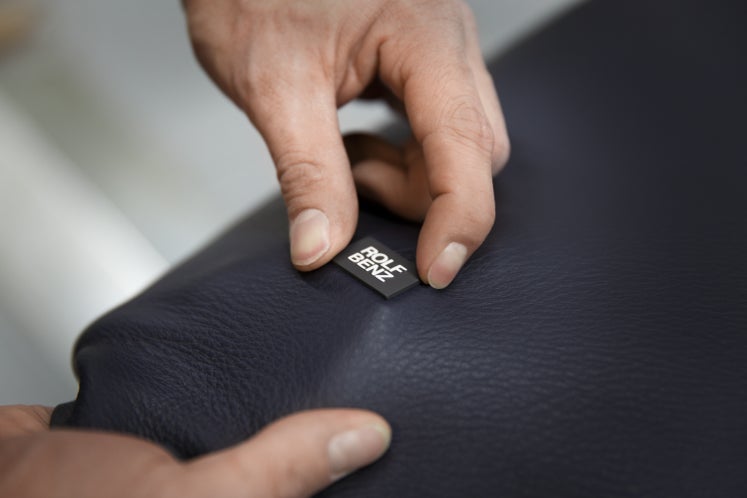 ロルフベンツのレザーは、ブランド専用に開発された技術で加工されています。最新のレーザースキャン技術を用いて一枚ごとに検品し、傷やナチュラルマークの位置を判別。シートクッションやアームレストなど目に触れる部分と、ソファ下など目立たない部分で最適に使い分けています。こうして天然素材ならではの個性を生かしつつ、常に高い完成度を実現しています。