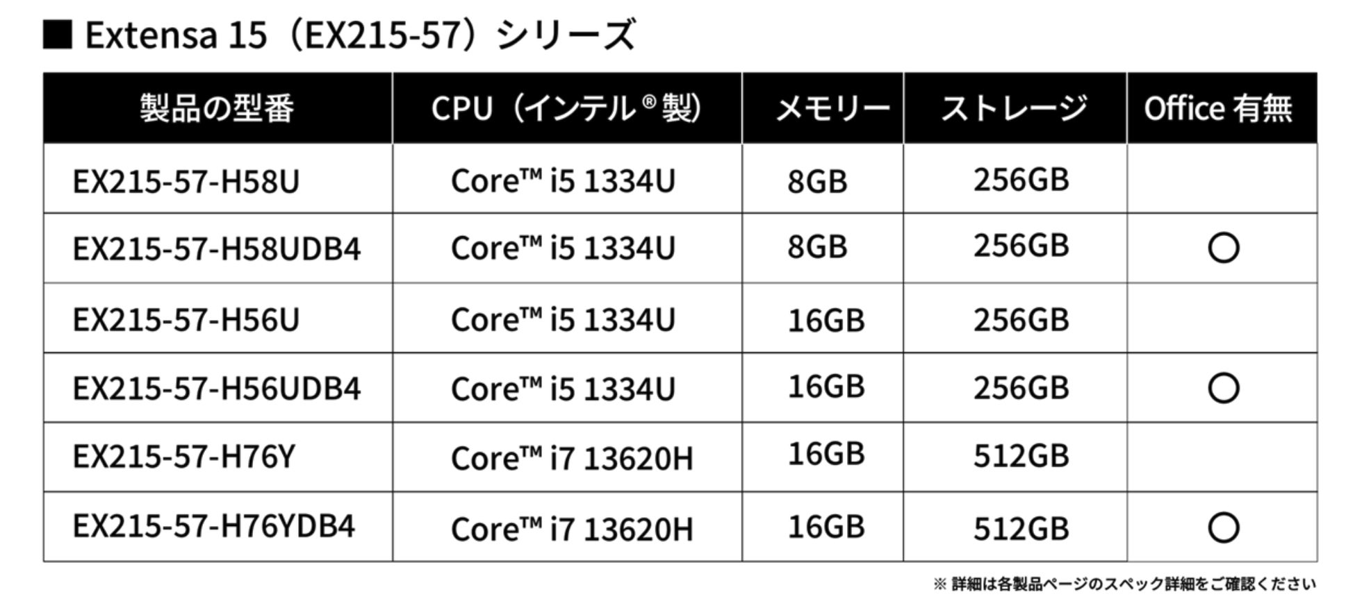 Windows 11ビジネスノートパソコン「Extensa 15」より法人向け15.6型モデルを一挙6機種発売開始!