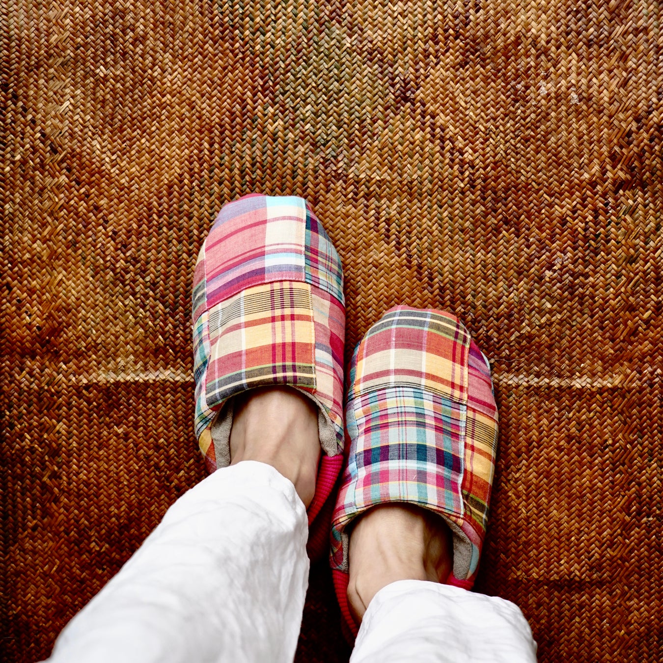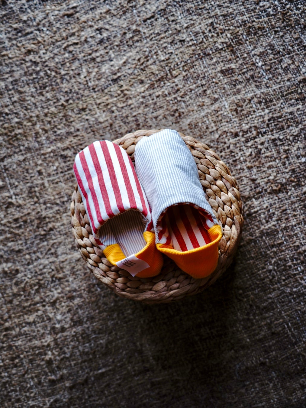 リバーシブルで表・裏の両方の生地と柄を楽しめるので、その日の気分やインテリアに合わせて履くことができます。