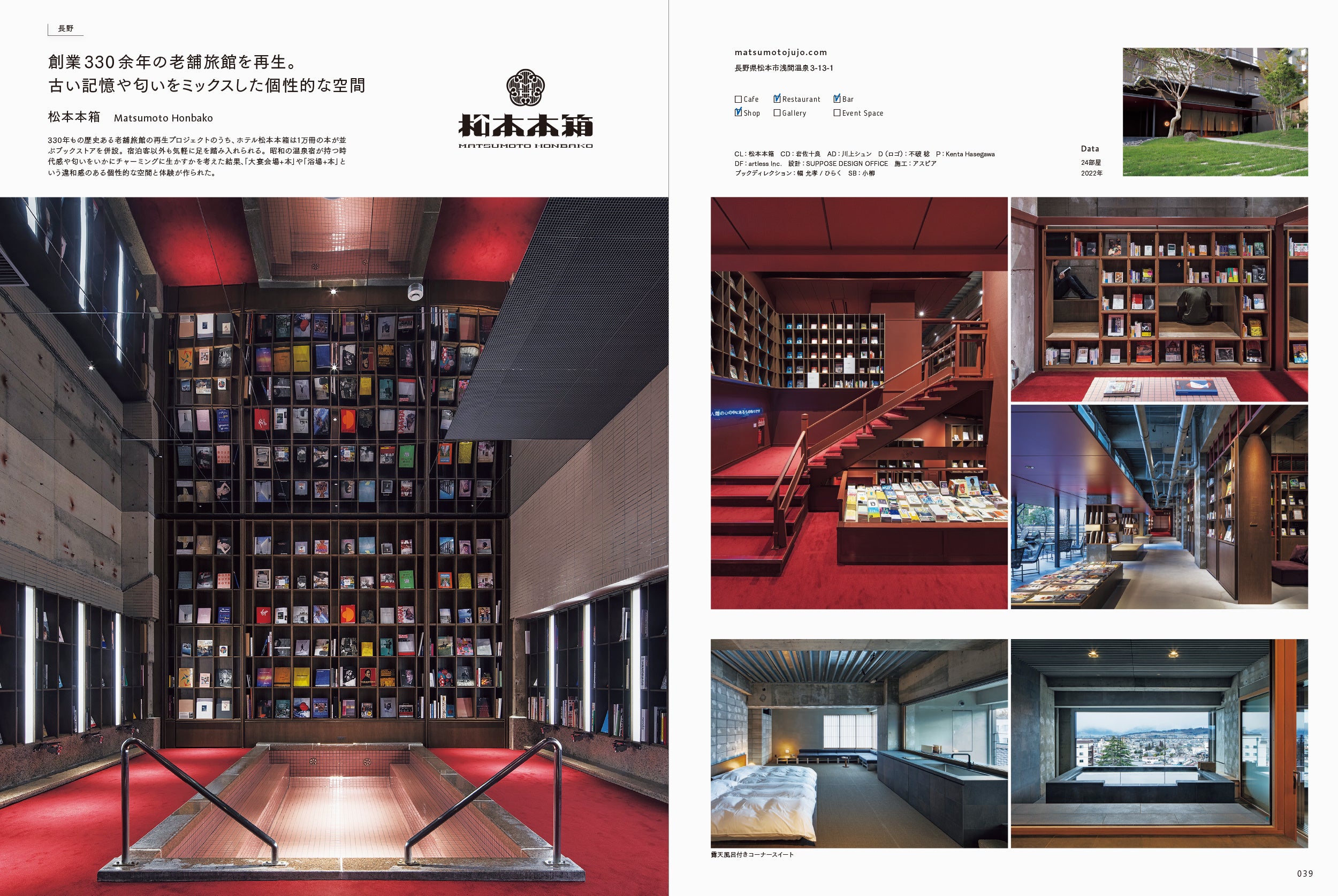 K5 / 丸福樓 / LOG / 松本本箱 / ビャク ナライ / マルヨホテル / MUJI BASE KAMOGAWA / NIPPONIA HOTEL 函館 港町 /カラリト五島列島 / ソイル瀬戸田 / デニムホステルフロート / くろしお想 / 由縁別邸 代田 / BnA_WALL / sequence MIYASHITA PARK /DDD HOTEL / ランダバウト東京 / 白井屋ホテル / ノーガホテル清水京都 / ホテルタビノス浅草 / 神楽坂レトロなバーとホテル /マルダ京都 / レフ松山市駅 by ベッセルホテルズ / Grand Paradiso Ibiza / glue hotel etc…