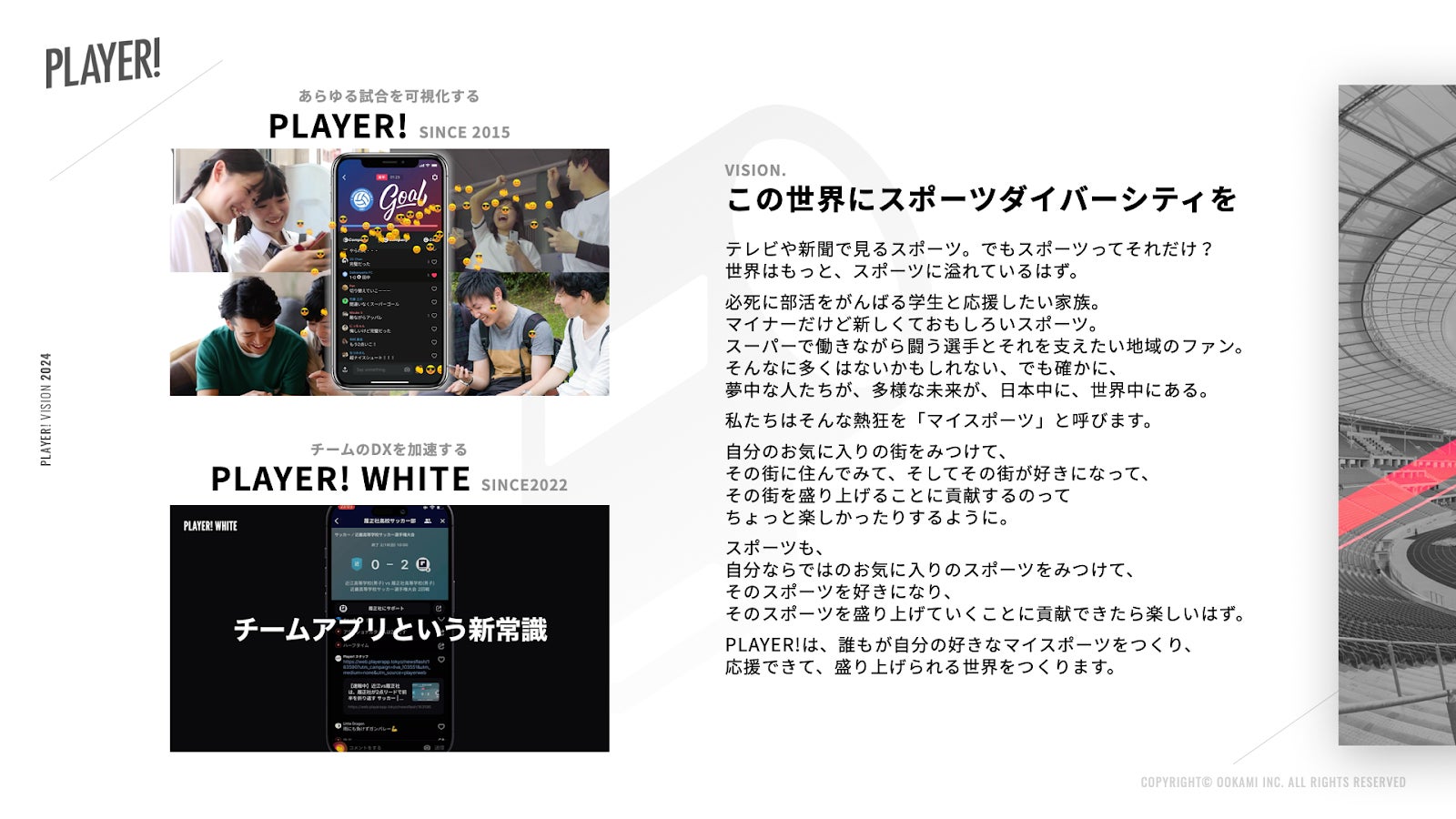▶︎事業内容:スポーツコミュニティアプリ「Player!」および「Player! WHITE」の開発・運営、スポーツ情報インフラの開発・運営