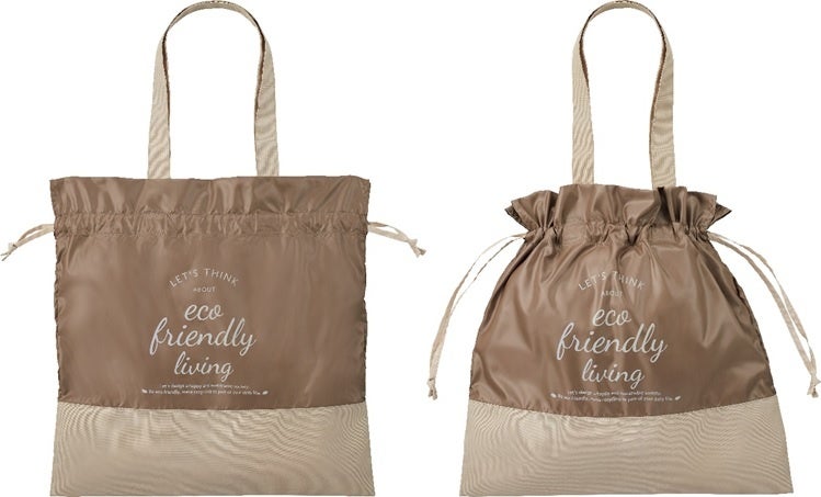 直営店舗では、使用済みのペットボトルを再利用し、使いやすい巾着型で軽くて大容量が入る地球環境に配慮したエコバックを用意しております。お買い物時にたまるファンケルメンバーズポイント700ポイントで交換していただけます。(画像左:開いた状態/右:巾着の状態)