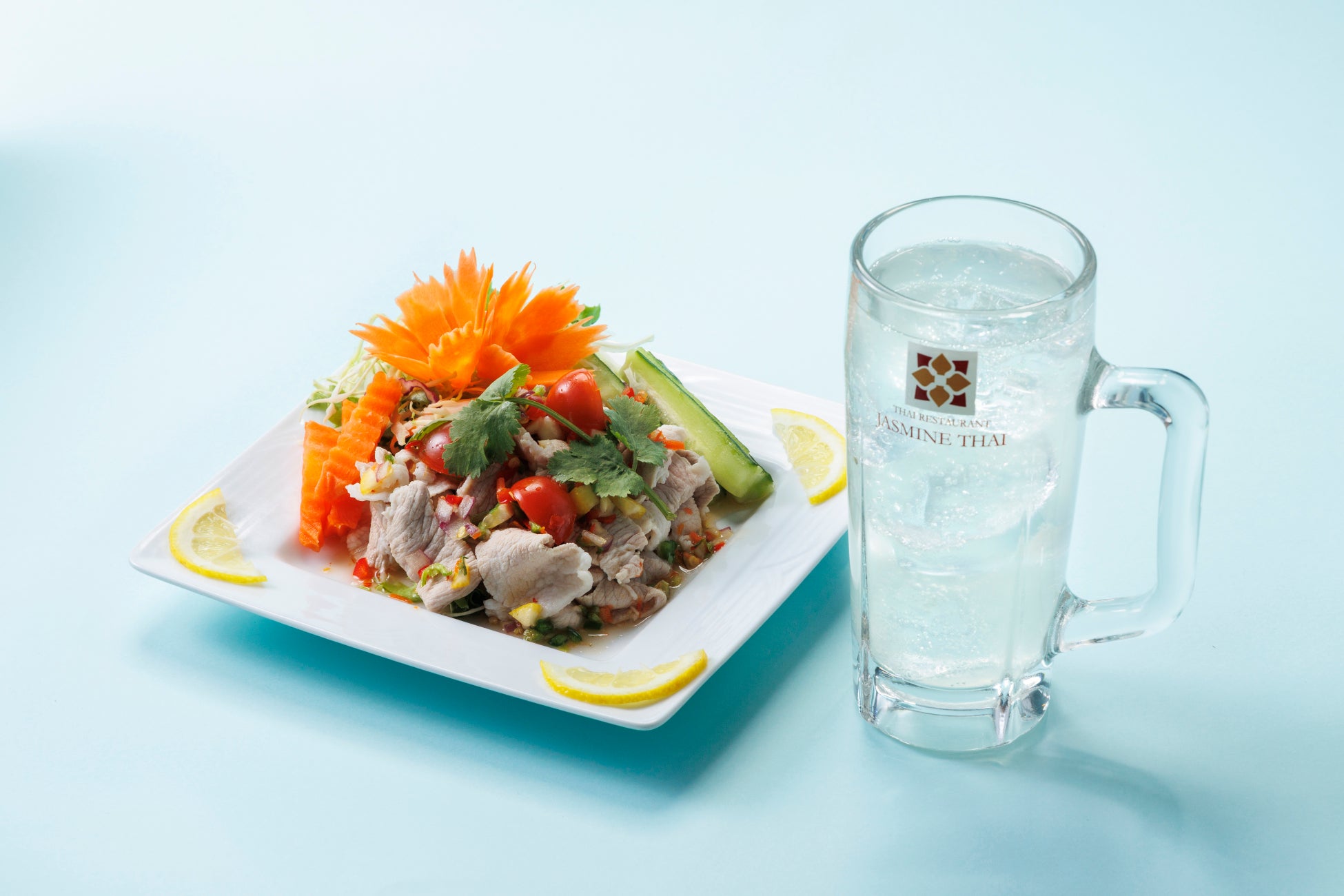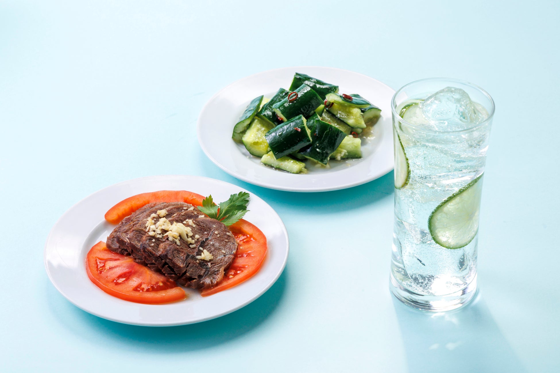 牛すね肉のにんにくソースと胡瓜のたたきをセットでお召し上がりください。