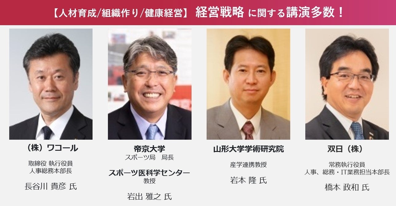 その他、人材育成・健康経営に関する講演も多数開催いたします。現実に直面している喫緊の課題を解説しながら、勝てる組織を構築するノウハウや人的資本経営をはじめとした最新動向や実践事例を学べる機会となっております。