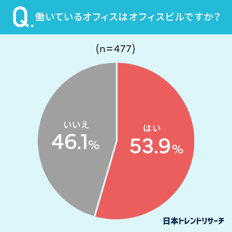 53.9%と半数以上の方が「オフィスビルに勤めている」と回答しました。